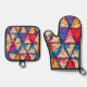 Vibrant Triangle Splatter Art Oven Mitt & Pot Holder Set