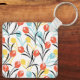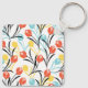 Vibrant Tulip Pattern Floral Design on White Keychain