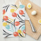 Vibrant Tulip Pattern Floral Design on White Kitchen Towel