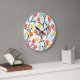 Vibrant Tulip Pattern Floral Design on White Large Clock
