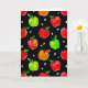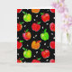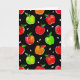 Hand painted, vibrant watercolor apples in red, green and gold colours. It's accented with white apple seeds and shown on a custom black background. Select your favourite background colour if desired and make the pattern big or small to make this greeting card just right for you. Fun design for fall, apple lovers or even teachers for back to school!