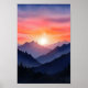Vibrant Watercolor Mountain Sunset Painting Poster