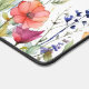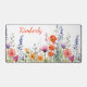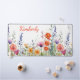 This vibrant watercolor wildflowers personalized desk mat showcases a pattern with a lively mix of purple, orange, and red jewel-toned blooms, paired with sleek modern script typography.