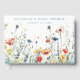 This design features a border of vibrant wildflowers in shades of red, yellow, green, teal, and blue. Perfect for casual summer baby showers.