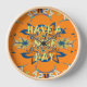This artwork prominently features the phrase "Have a Nice Day" at its centre, with stylized text surrounded by a repeating pattern of abstract floral and geometric shapes. The composition is symmetrical and visually busy, effectively drawing the eye to both the text and the intricate pattern beneath. The background boasts a solid, bright orange that enhances the overall vibrancy.