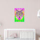 Colourful illustration of a wolf with vibrant pink, yellow, and green hues, surrounded by abstract trees and a gradient background.