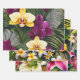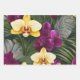 Vibrant yellow and deep purple orchids wrapping paper sheet
