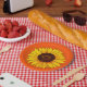 Great accent for an outdoor summer party. Bright colors, vibrant floral design