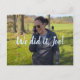 Vice President-Elect Kamala Harris: We Did It, Joe! personalized postcard. Commemorate the moment a jubilant Kamala Harris calls Joe Biden on the phone to tell him they won the 2020 Presidential Election, saying, "We did it, Joe!" This customizable postcard features a photograph of Kamala Harris outside on the phone callingJoe Biden in the historical moment when the first woman and first woman of colour tells the President-Elect they won the election. Personalize it by adding or changing text or images.