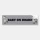 Funny Baby on Board bumper sticker featuring a funny Victorian baby image. The cute Victorian baby is carrying his miner's canary in a cage, drinking his milk from a bottle and is wearing a flat cap with a miner's lamp on it. He also has braces on his nappy or diaper, if that's what you prefer. This funny Baby on Board bumper sticker is for all parents who have a sense of humour and a baby who is already wearing flat caps.