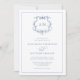 Victorian Baroque Floral Crest Blue Wedding Invitation features a timeless vintage style botanical monogram crest formed by vines of foliage and floral accents, and is trimmed with a delicate frame.