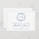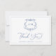 Victorian Baroque Floral Crest Blue Wedding Thank You Card