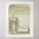A beautiful illustration of a Victorian bathroom decorated in blues, greens and golds.
