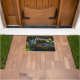 Customizable welcome doormat featuring a beautiful blue, orange, purple, and green victorian style ornament hangs from a tree at Silver Dollar City in Branson, Missouri.