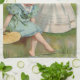 These sweet little girls are taking a break to soak their hot feet. This is a beautiful illustration from the late 1800's, when children played in lovely clothing in the garden.