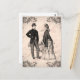 This couple looks like they are from the Victorian era! They are both dressed in very fancy clothes and they look very happy together. This would make a great postcard for someone who loves retro style!