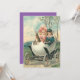 This spring send someone an Easter greeting! This vintage print depicts cute children and an Easter bunny in an egg car.