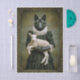 A striking anthropomorphic portrait features a refined wolf dressed in elegant, Victorian inspired clothing while gently holding a serene white lamb. The wolf’s dark fur contrasts beautifully against the crisp ruffled collar and the gown adorned with lace and intricate detailing. The lamb rests calmly in gloved hands, adding a symbolic and slightly surreal twist reminiscent of folklore and classical portraiture. Set within an ornate antique style frame and a softly lit painterly background, this design blends dark academia, whimsy, and storytelling charm—ideal for dramatic and imaginative craft projects. Artwork similar to classical portrait style anthropomorphic paintings……COLOR COMBINATIONS: Forest green, black, cream, gold, olive, beige, gray…..PERFECT FOR: Decoupage, mixed media, collage, journals, dark academia décor, gothic cottagecore themes, furniture upcycling, wall panels, storybook projects, and dramatic vintage inspired crafts.............…... 🖤 NOTE 1. This design is available in two options: Left and Right. You can find them in the Collection shown below. If they don’t appear there, try searching for their unique identifiers: ES7L for the Left design and ES7R for the Right version….🖤 NOTE 2. The 18 lb tissue is a great choice if you like a little extra strength—it's easier to handle, resists tearing and allows for gentle repositioning. It’s also more opaque, making it perfect for darker surfaces. The 10 lb tissue is wonderfully lightweight and flexible giving you that smooth, blended finish. It’s ideal for layering on furniture or smaller projects so treat it gently and it will reward you with stunning results!.….🖤 NOTE 3. All items with this particular design share my unique identifying “Letter/s Number/s” label in the title for easy searching. …..🖤