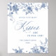 Blue Flower Ornate Victorian Grace Bridal Shower Sign Poster.