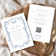Victorian Dusty Blue QR Code Floral Wedding Invitation