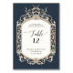 Victorian Elegant Formal Navy Blue Gold Reception Table Number