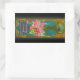 Vintage fench perfume advertisement sticker featuring a vase of roses and various other flowers. Says " bouquet d' oriente" and is framed with a pretty gold scroll. In rich colours of gold, green black, pink and purple.