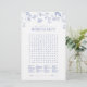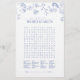 Introducing our stunning French Blue & White Victorian Bridal Shower Game! This game "bridal shower wordsearch" is the perfect addition to your upcoming bridal shower. It features a refreshing mix of traditional and modern style, with classic hand drawn blue Victorian florals of garden flowers, bees, and butterflies on one side. Plus, you can customize it with your own bridal details in modern hand lettered calligraphy to make it truly unique. And as a special added touch, turn it around to find a coordinating blue texture on the back adding even more detail. Don’t hesitate - this one-of-a-kind game will make your event one everyone will remember! View suite here: https://www.zazzle.com/collections/french_blue_white_victorian_floral_bridal_shower-119265327422133417 Contact designer for matching products. Copyright Surridge Design Co. for Elegant Invites, all rights reserved.