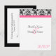 RSVP card to match our Elegant fuchsia hot pink, black and white wedding invitation, with elegant floral damask accent, and coloured horizontal accent strip. Customize online with your wedding details.