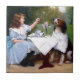 Victorian Girl Pet Dog Table Manners Painting Tile