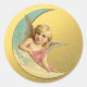 Victorian Golden Moon Angel Christmas Classic Round Sticker