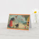 Vintage / Victorian Halloween greeting card. Old witch and her black cat keeping an eye on the Halloween brew with devils, skeletons and other scary Halloween creatures! Hallowe'en!