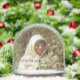 Une belle illustration vintage d'une petite fille dans la chute de neige tenant des branches saintes. La personnalisation est facultative.