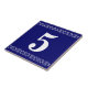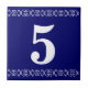 Victorian House Number Tile - White on blue with a curly cue border.