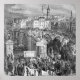 Vintage engraving by Gustave Dore showing a scene from 19th Century Victorian London England. Showing the new London Bridge that replaced the medieval version, full of Londoners..