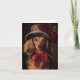 Celebrate the season with a vintage touch—this Christmas card showcases an adorable red Long Haired Dachshund in a Victorian holiday hat.