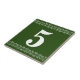 Victorian House Number Tile - White on green with a printer's border