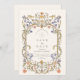 A refined and graceful wedding design with an ornate Victorian-style frame, delicate floral accents, and elegant scrollwork in soft hues of lavender, gold, and coral. Ideal for a romantic and timeless celebration with vintage sophistication.