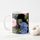 Elegance meets nature in this Victorian floral pattern. Light pink roses and blue hydrangea bloom on a black canvas.