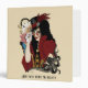 A black haired woman all in red victorian steampunk attire. Black tribal octopus, clock, blue butterfly and pink rose