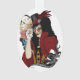 A black haired woman all in red victorian steampunk attire, Black tribal octopus, cloak, blue butterfly and pink rose