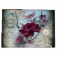 Lovely, vintage, red rose florals on newspaper print, featuring a faux pearl brooch and necklace, birdcage with teal bow to create a luxury, extravagant, victorian chic style.