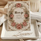 Each RSVP card features intricate floral ornaments and ornate detailing, reminiscent of classic Victorian artistry. The luxurious design harmonizes perfectly with the rest of your wedding suite, creating a cohesive and opulent aesthetic that will impress your guests.