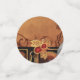A warm orange-brown backdrop sets the tone for this steampunk wedding design, featuring a vintage clock, gears, and brown line art. At the centre, a Victorian couple—dressed in their finest steampunk attire