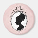 A pretty 60s style silhouette cameo on a pale pink distressed backdrop.