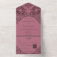 Elevate your gothic wedding with a Victorian-inspired all in one wedding invitation with a QR code that exudes timeless elegance and mystery. Designed to resemble an antique book binding, this stunning design features intricate a black and burgundy wine lacey filigree, evoking the charm of a bygone era. The wording, "Til Death Do Us Part" can be edited and changed, or deleted entirely, if you prefer. Let your love story unfold with an invitation as unforgettable as your day. Created by Simply Farmhouse Press.