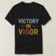 The text "Victory in Vigour" bursts onto the shirt in a variety of bright colours, each word standing out and conveying a sense of energetic achievement.