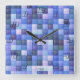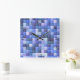Video Game Pixels Blue Square Pattern Wall Clock
