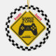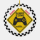 Video Gaming Ornament with black and white outer ring frame and customizable text on front and back,. We used the gamer's name and his gaming handle, but you can add whatever text you'd like.