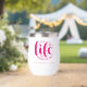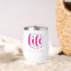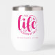 Amusants pour votre maison ou pour offrir en cadeau, ces tumblers à vin thermaux portent votre nom de famille, année établie, et "Pool life parce que plages être salé" en lettres chic rose chaud. Objets et plus de couleurs dans notre collection.