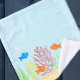 La vie marine avec poissons orange et bleus jouant au milieu d'un récif sablonneux de corail et d'algues, au milieu des bulles océaniques.